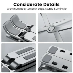 Xiaomi laptopstandaard opvouwbaar en instelbaar op verschillende niveaus. Gemaakt van robuuste en lichtgewicht aluminiumlegering met premium afwerking. Het gehele oppervlak dat contact maakt met de laptop is bedekt met siliconen om een volledige grip te vergemakkelijken en te voorkomen dat de apparatuur wegglijdt.