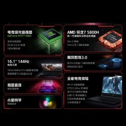 Xiaomi Redmi G (2021) Laptop with Intel i5 or Ryzen 7 processors, 16GB RAM, 512GB SSD and NVIDIA GeForce RTX 3060 GPU. Battery for up to 6 hours and 16.1 inch Full HD 144Hz display.